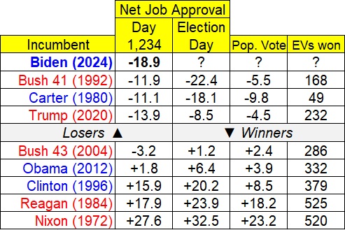 Also, here is the current score on Biden Job Approval against past first term presidents running for re-election: