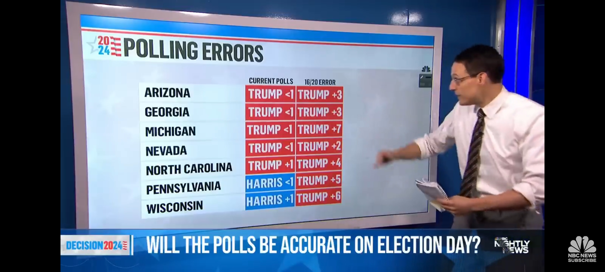 | Pollsters wrong in 2024: | 42.0 / 55.1 | -13.0 |